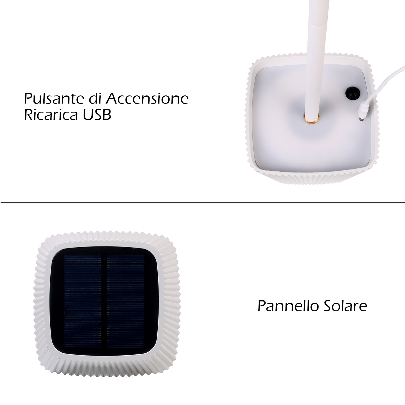 La lampada da tavolo LED ricaricabile con paralume quadrato plissettato bianco rappresenta la perfetta unione tra eleganza estetica, funzionalità avanzata ed efficienza energetica. Ideale sia per ambienti interni che esterni, questo accessorio di design si distingue per la sua versatilità d’uso, la possibilità di regolare la luce secondo le esigenze e le opzioni di ricarica moderne: energia solare e USB.
