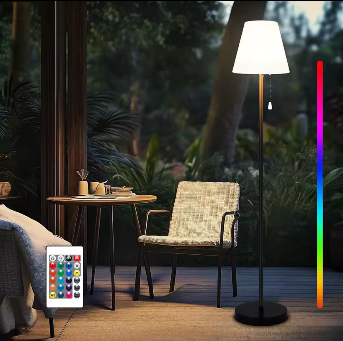 Offre diverse modalità luminose: luce bianca naturale, luce calda, fredda e colori RGB, tutti regolabili tramite telecomando incluso. Perfetta per eventi serali, cene in terrazza o semplicemente per creare un angolo relax colorato e personalizzabile. Cambia atmosfera con un click, dalla praticità dell’illuminazione tecnica all’eleganza dell’effetto decorativo.
