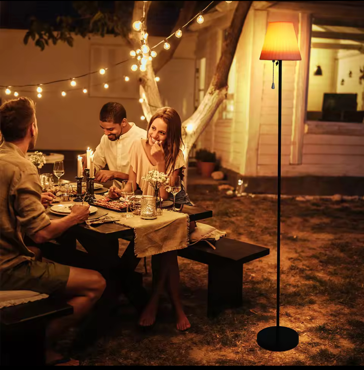 Realizzata con materiali resistenti e una base stabile in metallo, la lampada è impermeabile IP65, quindi perfetta per resistere a pioggia, umidità e polvere. Il design elegante si adatta perfettamente a contesti come dehors, beach bar, lounge da giardino, bistrot, terrazze, vialetti e molto altro. Una fusione perfetta tra estetica e funzionalità per l’arredo esterno moderno.