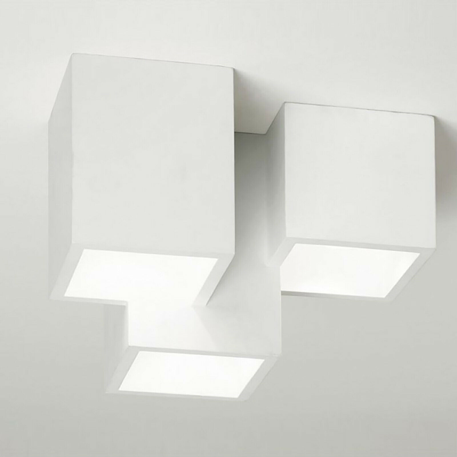 Lampada gesso da soffitto plafoniera a 3 cubi attacco faretto GU10 luce 4000K
