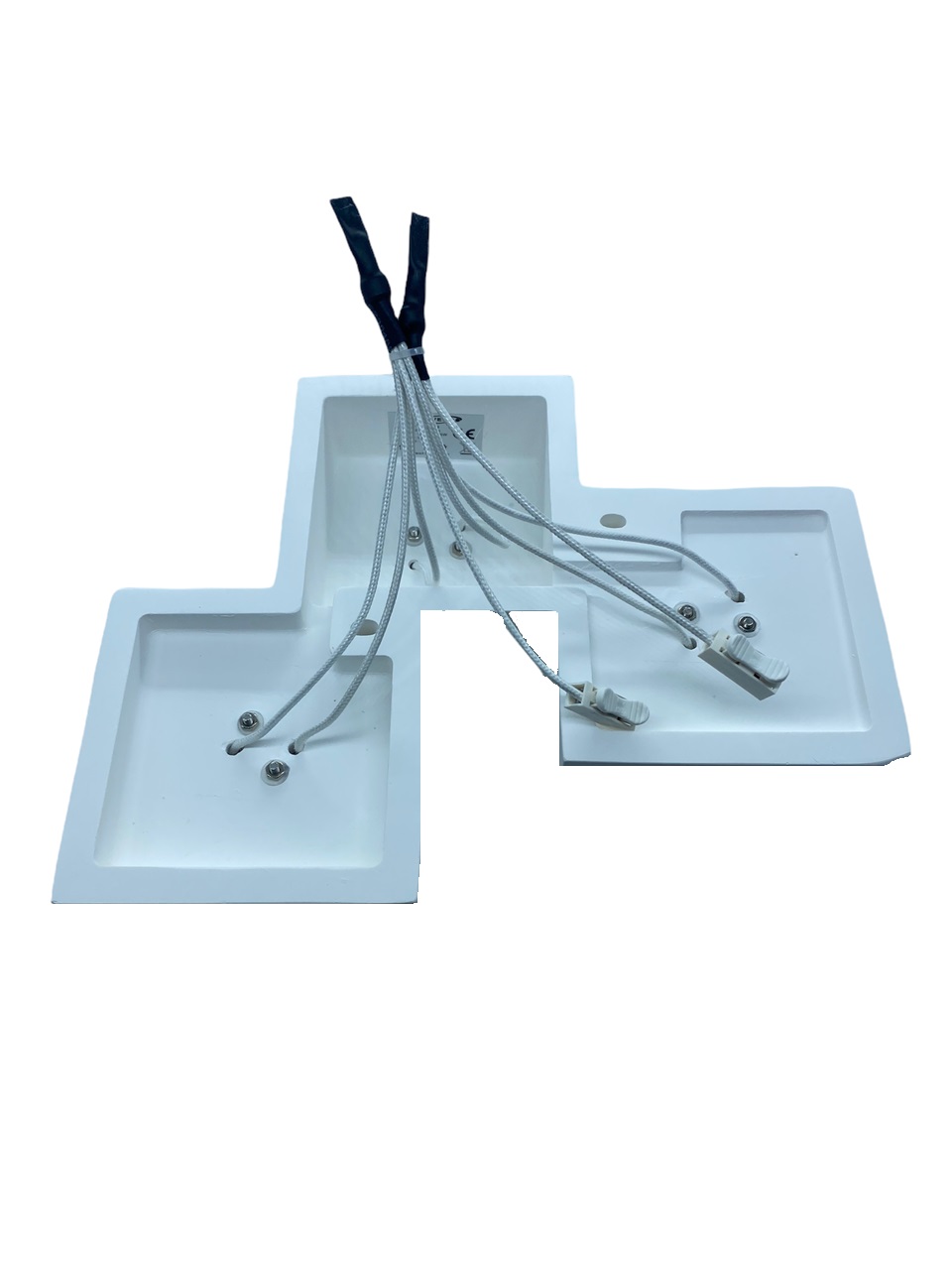• Nuova ed elegante plafoniera in gesso dal design moderno di colore bianco adatta per installazioni a soffitto, verniciabile, dotata di 3 diffusori quadrati con portalampada GU10 adatta per l'illuminazione interna di salotti, uffici, cucine modere, soggiorni per l'illuminazione di negozi, attività commerciali, ristoranti per dare un'impronta di eleganza ai propri ambienti interni.