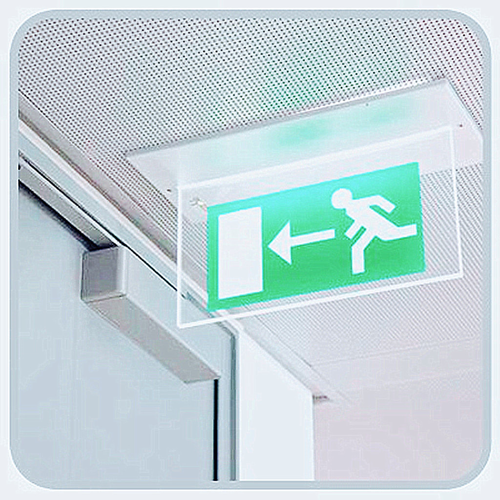 Apparecchio led realizzato per ridurre l'impatto estetico della segnaletica di sicurezza, con facile sistema di istallazione ad incasso in cartongesso
