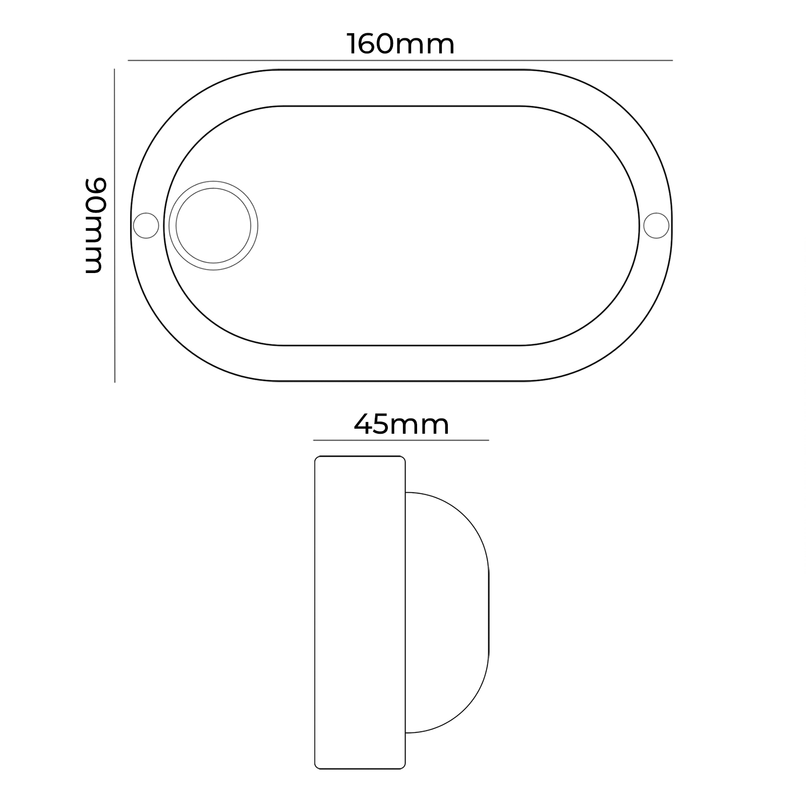 Infografica Lampada con Sensore di Movimento 9W Schema Dimensioni 160 x 90 x 45 mm