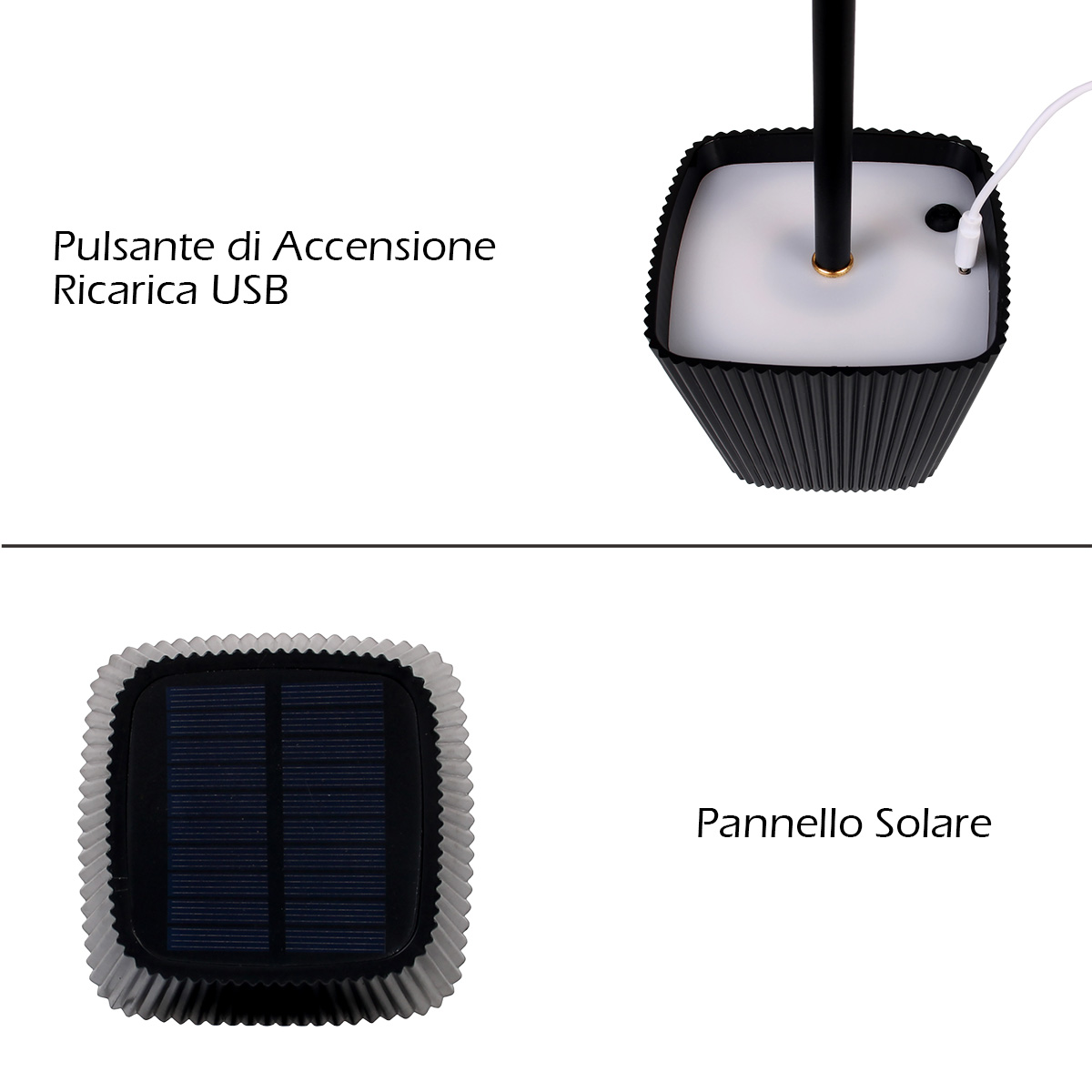Scopri la perfetta fusione tra eleganza, funzionalità e sostenibilità con la lampada LED da tavolo ricaricabile con paralume quadrato plissettato nero, un elemento di illuminazione moderno ed efficiente, progettato per offrire una luce regolabile, sostenibile e decorativa in ogni ambiente. Ideale per chi cerca una lampada da tavolo LED con design raffinato e prestazioni versatili, questo modello si distingue per la sua ricarica doppia (energia solare + USB), il paralume plissettato nero dallo stile contemporaneo, e un sistema di illuminazione dimmerabile con 3 temperature di colore.