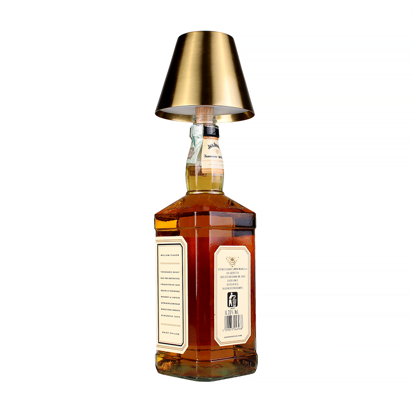 Infografica Lampada LED Ricaricabile con Tappo per Bottiglia Dimensioni 115x108x60mm Lampade da Tavolo Color Bronzo con Tappo per Bottiglia Accese Luce Calda