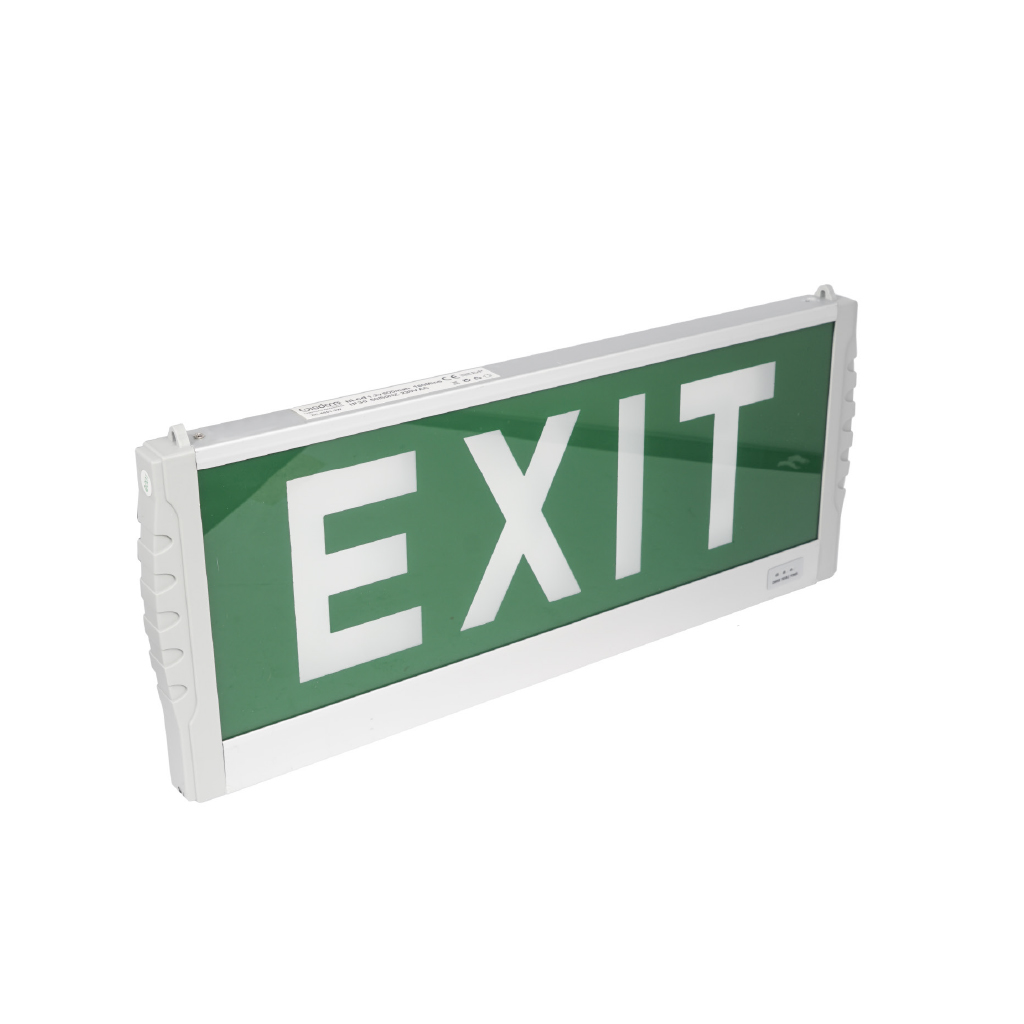 Apparecchio led per segnaletica di sicurezza con scritta EXIT progettato per una semplice istallazione a sospensione ( kit di fissaggio a sospensione incluso nella confezione)