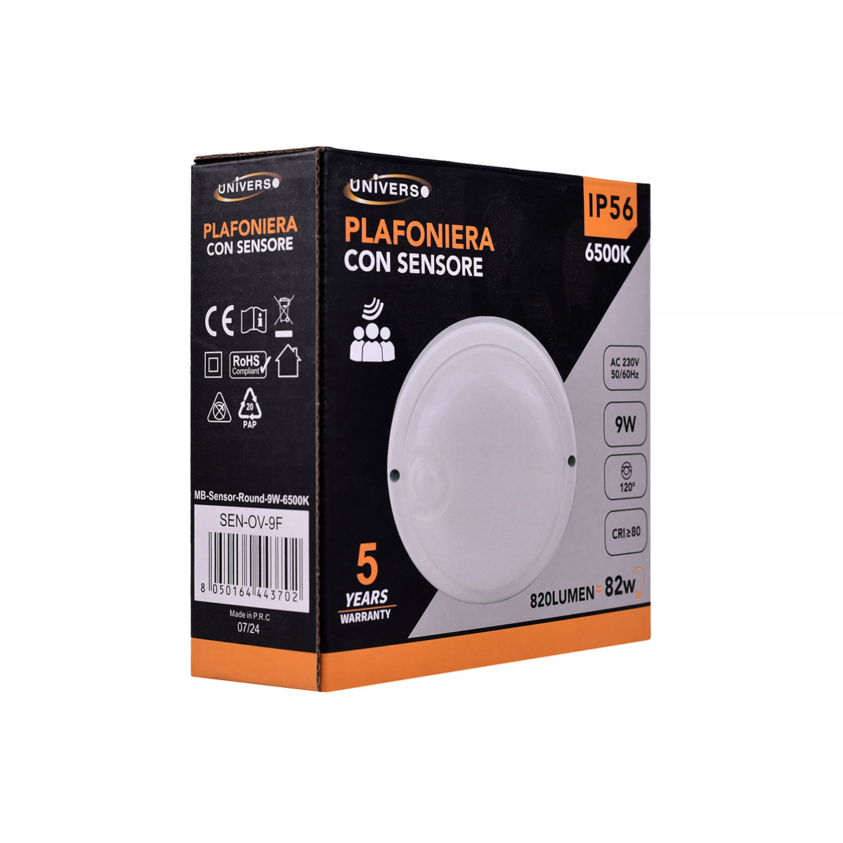 La Lampada LED Tonda con Sensore di Movimento da 9W, con temperatura di colore luce fredda 6500K, rappresenta una soluzione di illuminazione efficiente e automatizzata, ideale per migliorare la sicurezza e il comfort in ambienti interni ed esterni. Grazie al suo design compatto, alla resistenza agli agenti atmosferici e al consumo energetico ridotto, questa lampada è perfetta per applicazioni in garage, ingressi, corridoi, scale, balconi, terrazzi e cantine.
