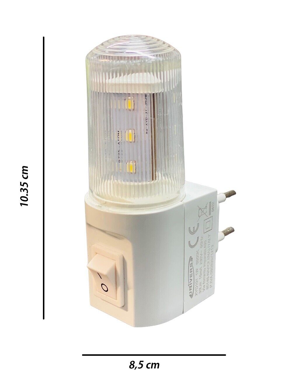 Lampadina da presa muro consumo 1W , luce a led basso wattaggio che non riscaldano il dispositivo, luce bianca fredda 6500k, luminosità 30 Lumen.