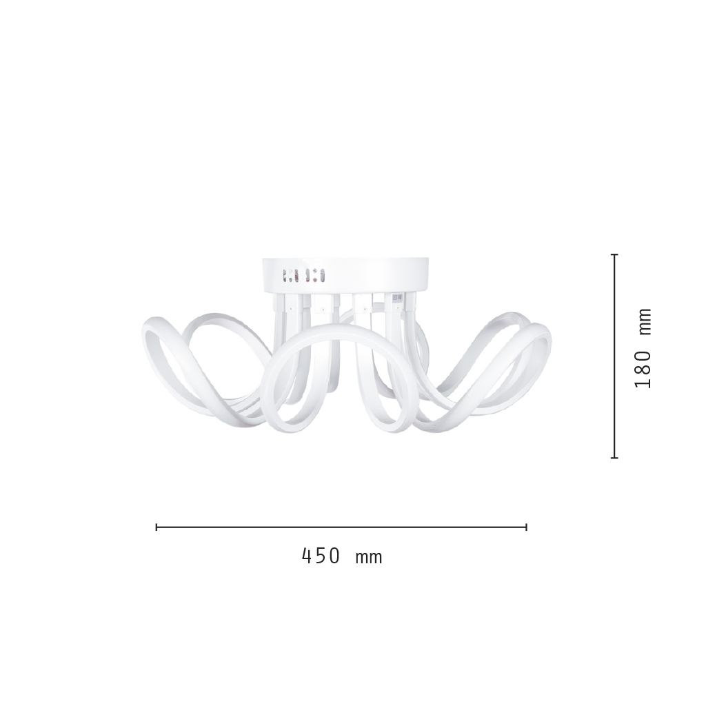 Lampadario dalla singolare forma e dal corpo bianco interamente realizzato in termoplastica con paralume in acrilico trasparente e chip led integrati.