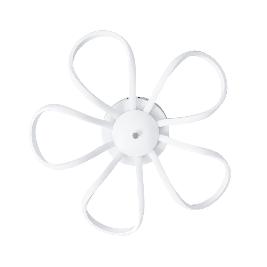 Lampadario dalla singolare forma e dal corpo bianco interamente realizzato in termoplastica con paralume in acrilico trasparente e chip led integrati.