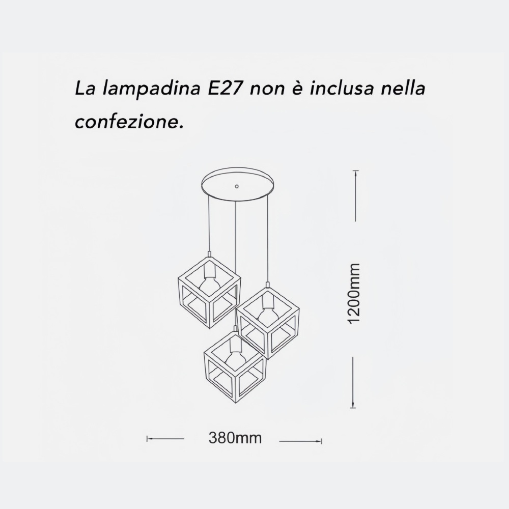 Questo elegante lampadario a sospensione con struttura a tre cubi geometrici rappresenta una soluzione perfetta per arredare ambienti moderni con stile e personalità. Il design tridimensionale crea un suggestivo gioco di luci e ombre che valorizza qualsiasi spazio domestico.