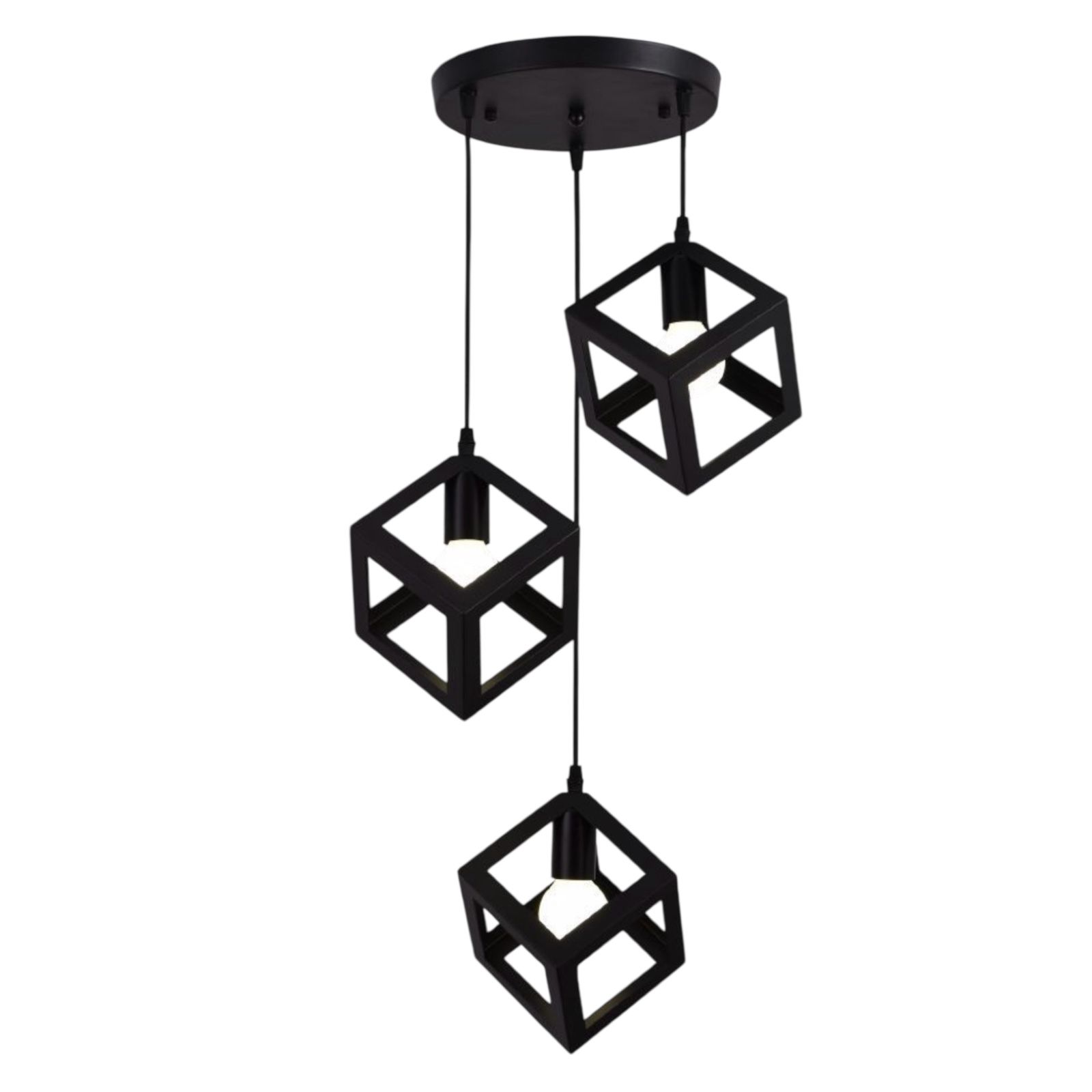 Perfetto per ambienti in stile industriale, moderno o contemporaneo. Compatibile con lampadine E27 LED o vintage e con cavi regolabili per adattarsi a diverse altezze di soffitto.