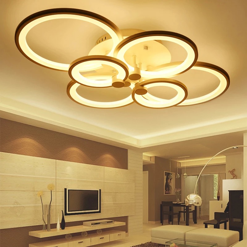 Lampadario Moderno Plafoniera led moderno 6 anelli 51 watt Luce Calda