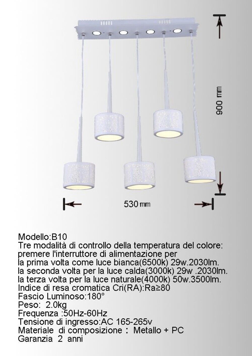Lampadario a sospensione led plafoniera in metallo bianco con 3 modalita accensioni di luce bianca