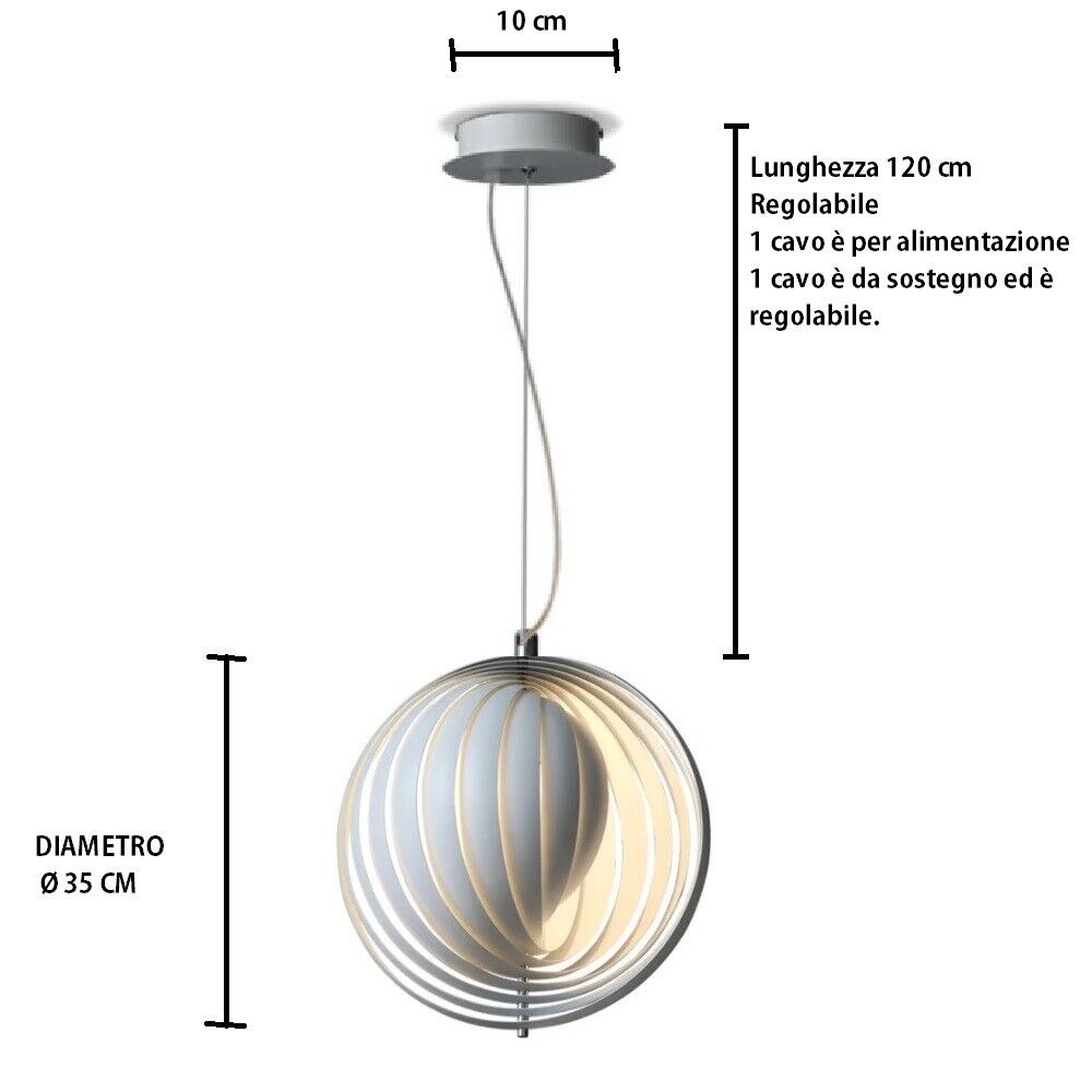 • Dal lampadario al rosone partono 2 cavi, di cui uno è per l'alimentazione, l'altro di sostegno con cui si può anche regolarne l'altezza. La sua lunghezza massima è di 120 cm. Il rosone misura 10 cm, mentre il diametro del lampadario è di 35 cm (VEDI FOTO).