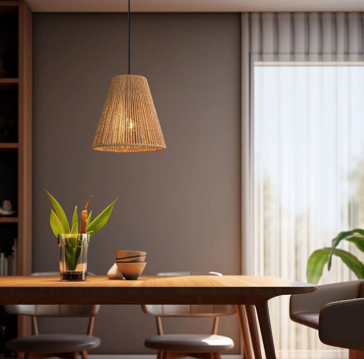 • Stile Vintage e Naturale: Questa lampada a sospensione aggiunge creatività e un tocco hygge alla tua casa. Perfetta per diverse ambientazioni, come bar, cucina, soffitta, sala da pranzo, studio e camera da letto. Scegli di installarla singolarmente o in gruppo per un impatto visivo ancora maggiore.