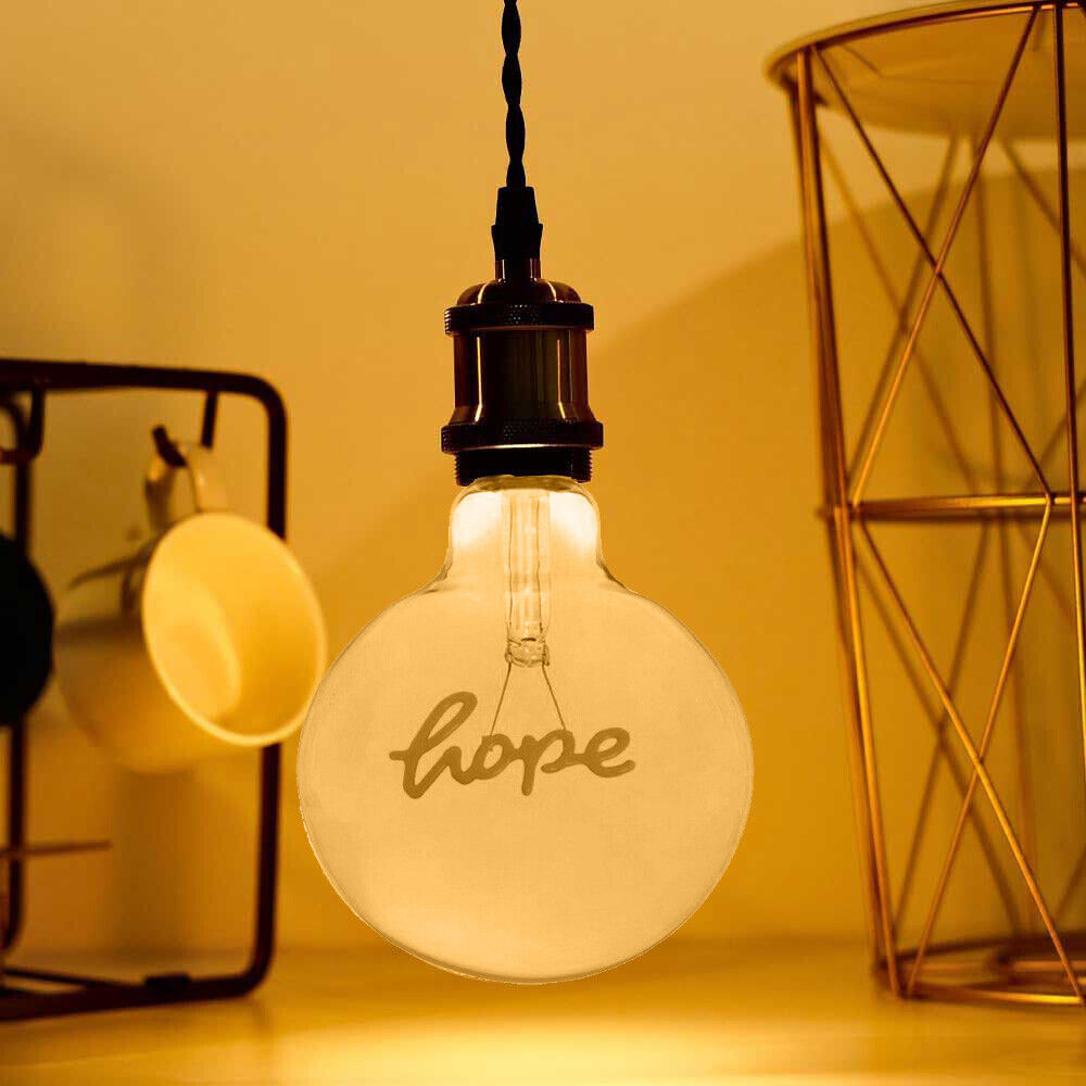 Lampadina globo a LED attacco E27 stile vintage con scritte filamento luce calda scritta HOPE