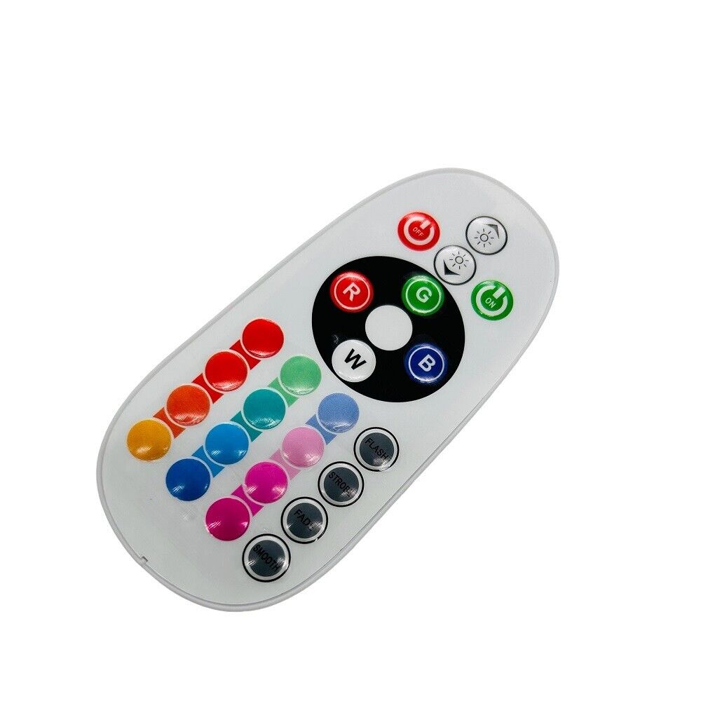 Tecnologia SMD, con LED RGB+W (ha il colore bianco separato che fornisce il vero bianco di una lampadina LED classica), che consente di variare il colore della luce tramite il telecomando ad infrarossi in dotazione (ricevitore integrato). Grazie al telecomando a 24 tasti è possibile accendere o spegnere il faretto, scegliere tra 16 colori statici (compresa la luce bianca),16 livelli d'intensità luminosa (dimmerabile) e 4 giochi di luce.