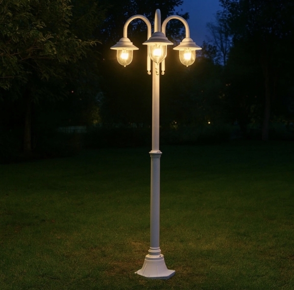 Lampione classico Bianco da giardino a 3 luci E27 in alluminio lanterna da esterno IP54 per vialetti parchi e ingressi eleganti