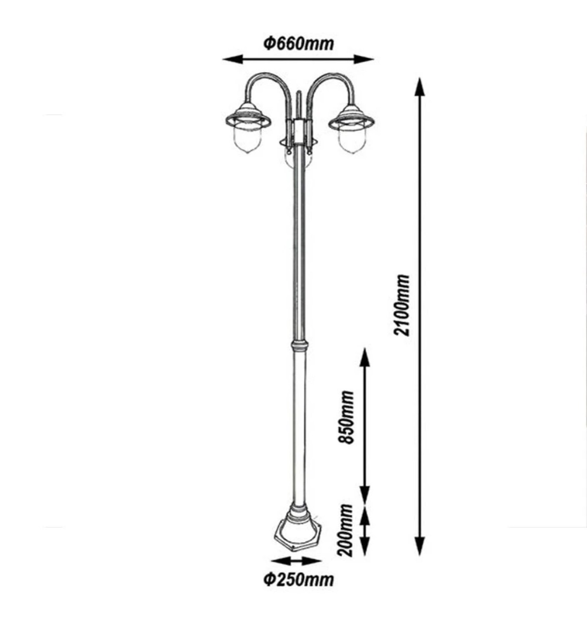 La struttura in alluminio resistente e i diffusori in PVC trasparente garantiscono affidabilità, sicurezza e durata nel tempo. Grazie ai tre portalampada E27, il lampione offre una luce diffusa e accogliente, ideale per valorizzare vialetti, ingressi, giardini e percorsi pedonali.