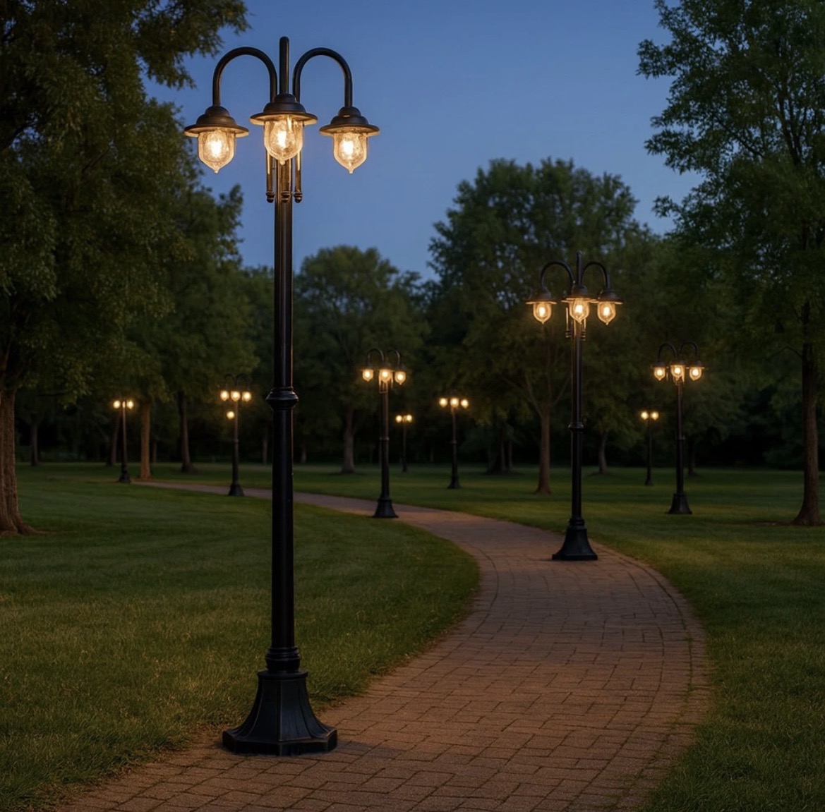 Questo lampione da giardino a tre luci è una soluzione di illuminazione esterna progettata per ambienti classici, tradizionali e retrò, dove estetica e funzionalità devono convivere armoniosamente.