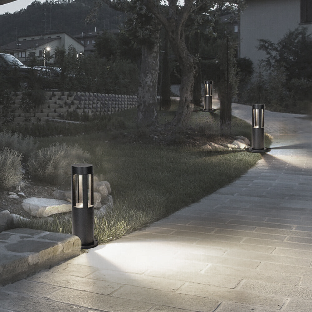 Lampione per esterno da 30cm dal design moderno ideale per l'illuminazione di percorsi pedonali, vialetti, aree verdi private, l'illuminazione del giardino, all'esterno di abitazioni, negozi, per illuminare ed arredare ambienti esterni come cortili, parchi, aree condominiali. Realizzato in alluminio con grado di protezione IP65 adatto per resistere alle intemperie e gli agenti atmosferici.