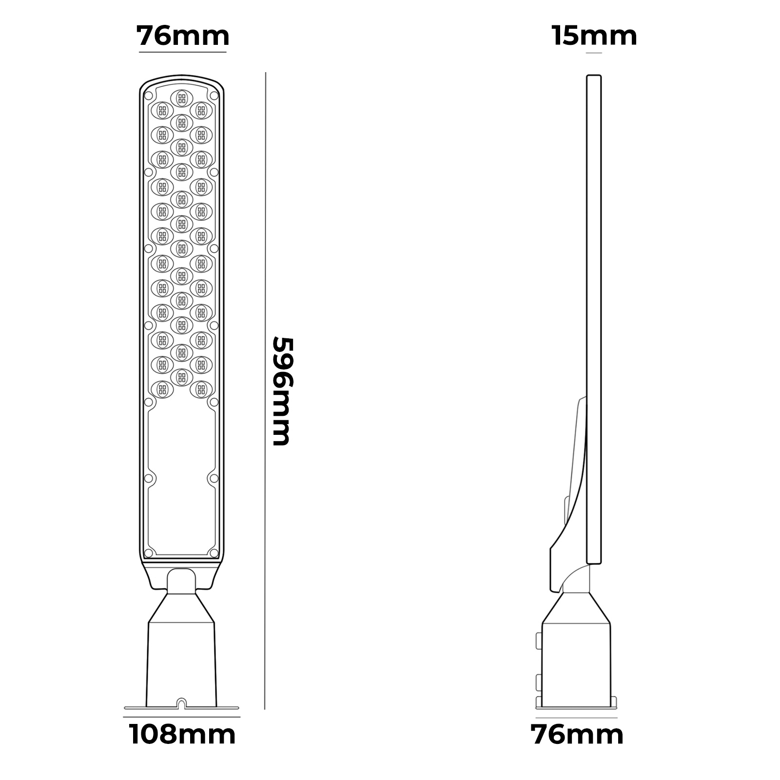 Infografica Scheda Dimensioni Lampione Stradale LED 100W 596 x 108 x 76 mm