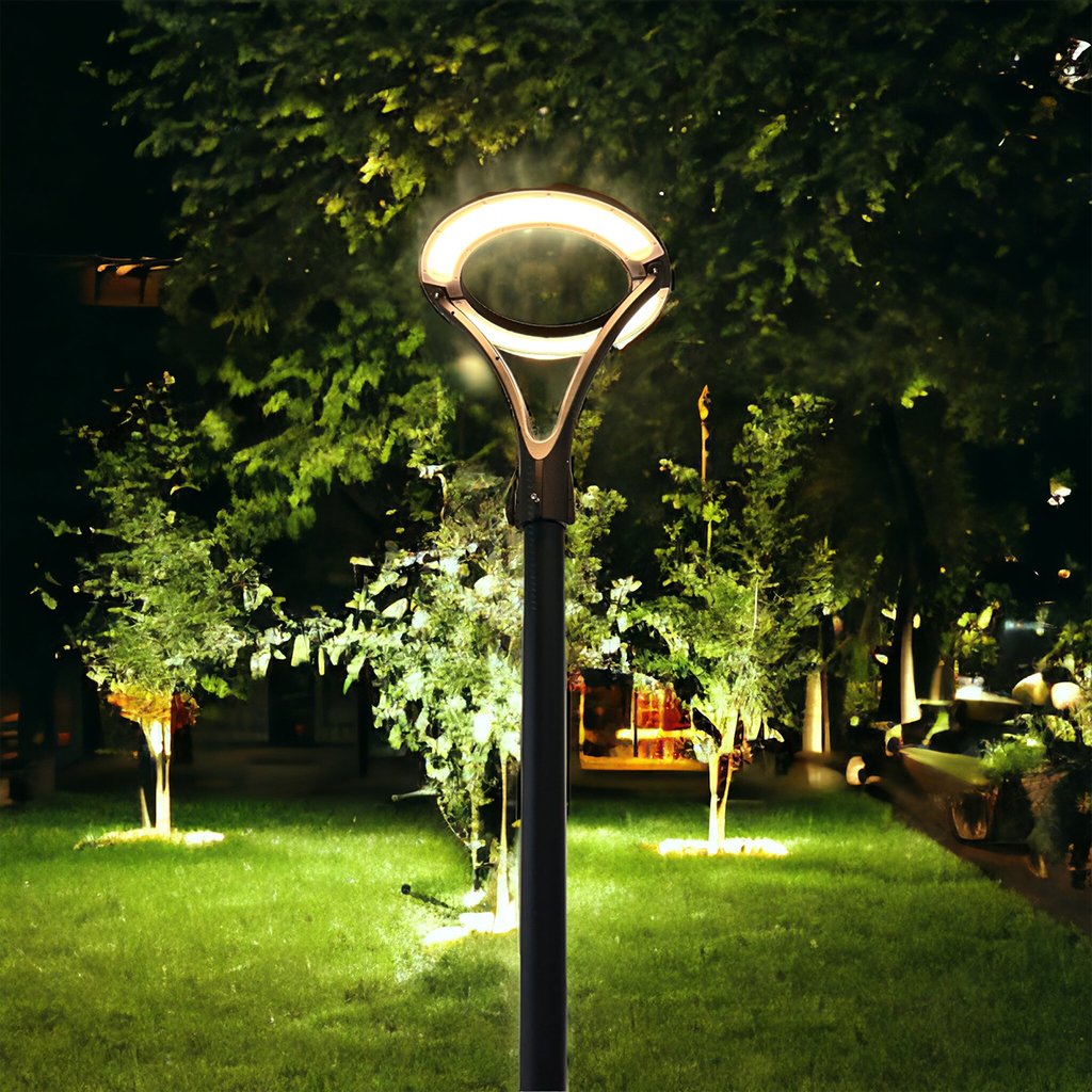 Lampione moderno LED 100W cerchio luminoso IP65 da Giardino viali a luce Bianca 4000K