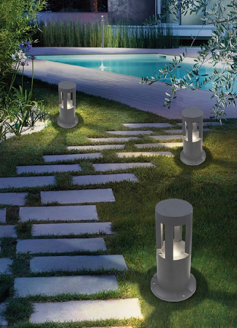 Lampione per esterno da 30cm dal design moderno ideale per l'illuminazione di percorsi pedonali, vialetti, aree verdi private, l'illuminazione del giardino, all'esterno di abitazioni, negozi, per illuminare ed arredare ambienti esterni come cortili, parchi, aree condominiali. Realizzato in alluminio con grado di protezione IP65 adatto per resistere alle intemperie e gli agenti atmosferici.