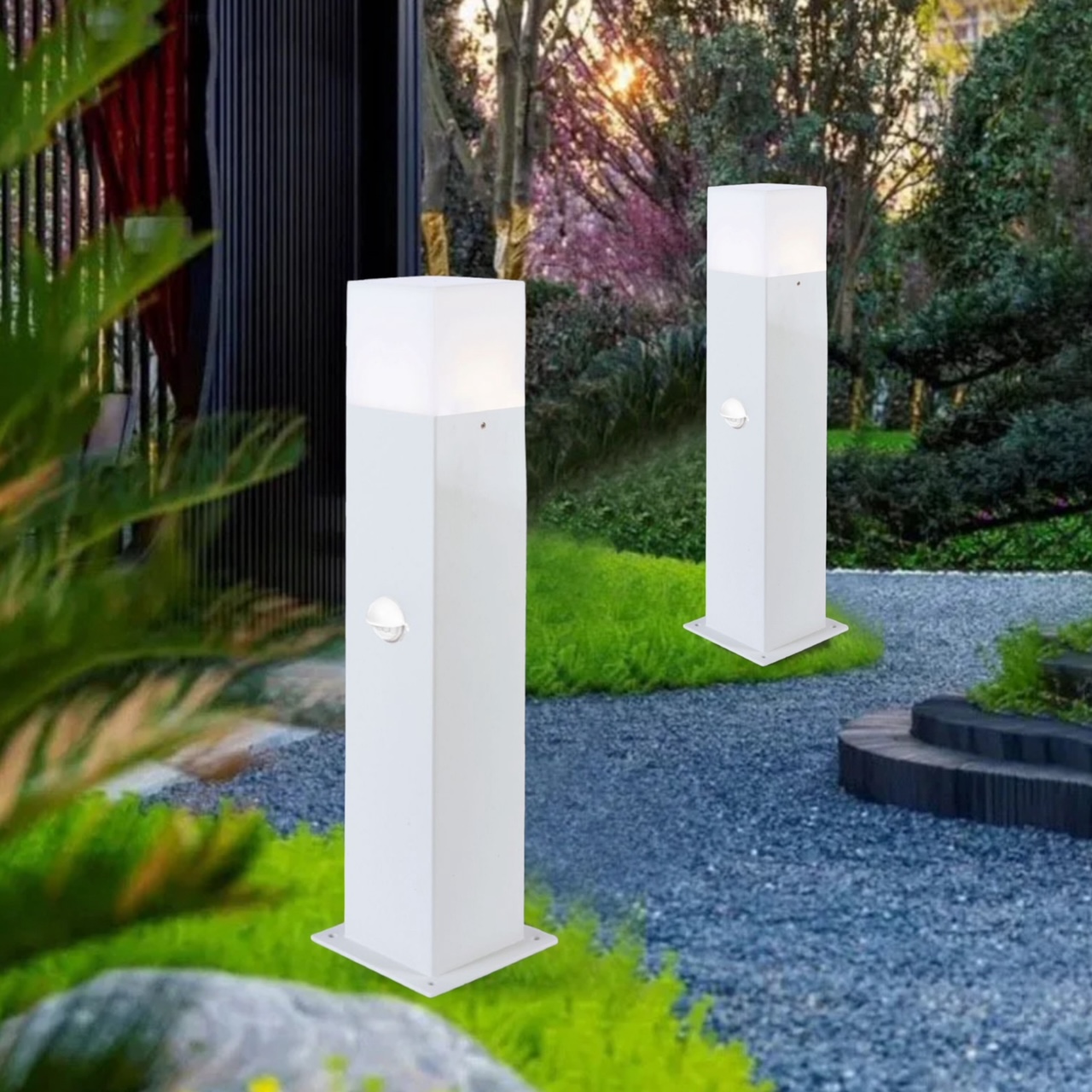 Lampione palo luminoso da giardino Bianco con attacco per lampadine E27 dotato di sensore movimento PIR