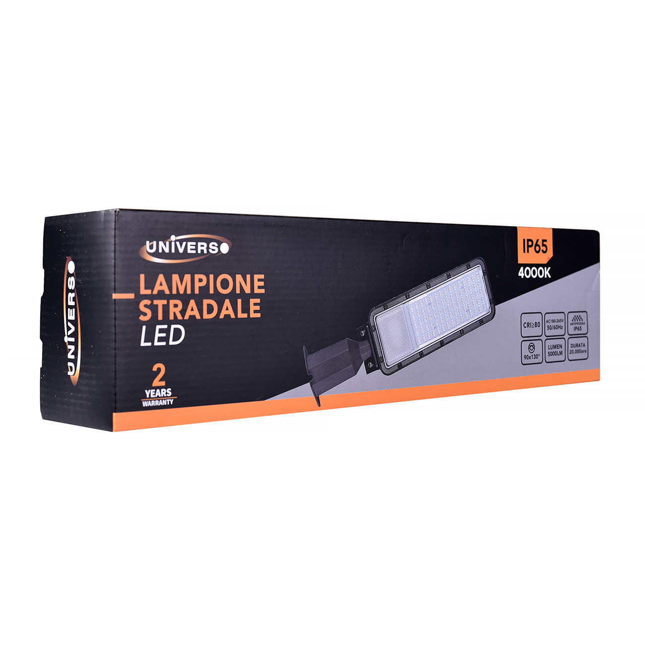 LAMPIONE STRADALE LED 50W GRIGIO LUCE NATURALE 4000K° - ALTA EFFICIENZA IP65 PER ILLUMINAZIONE ESTERNA