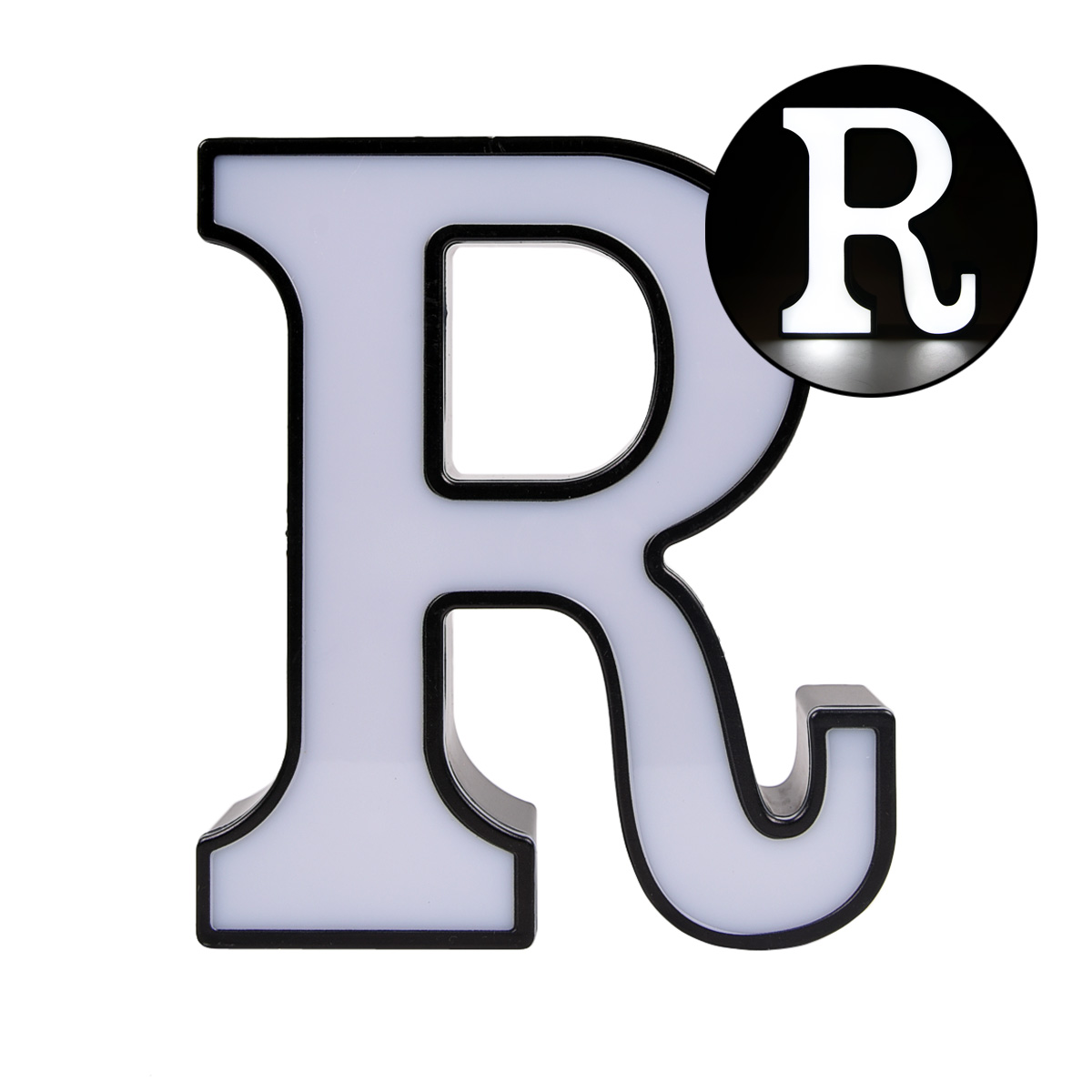 Infografica Lettera Luminosa R a Batteria o Trasformatore 5V Luce Bianca Fissa Dimensioni 20 x 10 x 5 cm
