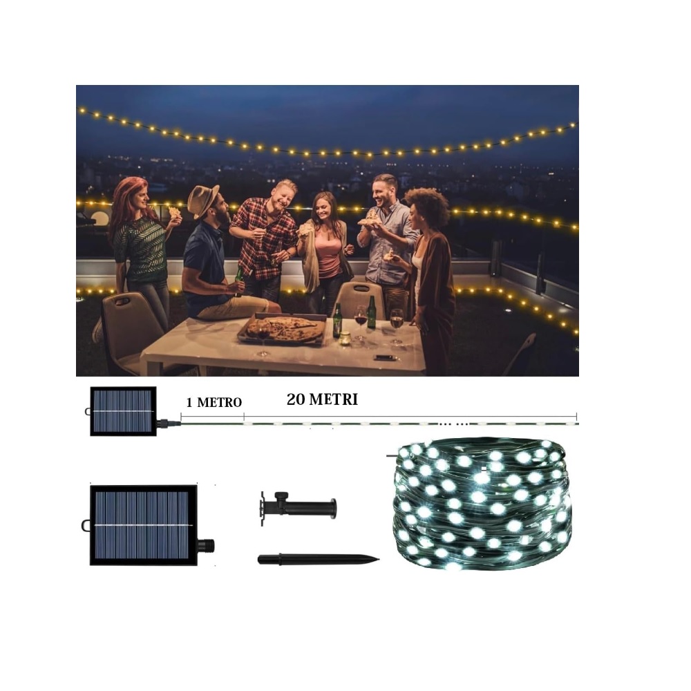• Benvenuto nella magia delle feste con la nostra Catena Luminosa Solare Esterna da 200 LED LUCE FREDDA! Questa catena luminosa da 20 metri è progettata per creare un'atmosfera natalizia perfetta e aggiungere un tocco di eleganza al tuo spazio esterno.