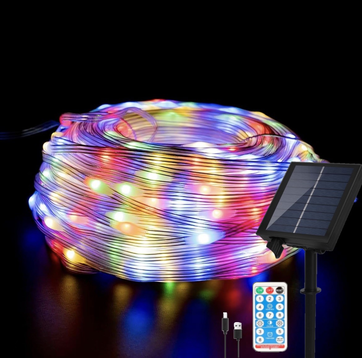 • Energia Solare e Ricarica USB: Grazie al pannello solare e alla batteria ricaricabile, questa catena luminosa si alimenta con energia solare durante il giorno e può anche essere ricaricata tramite USB per garantire l'illuminazione continua durante la notte.