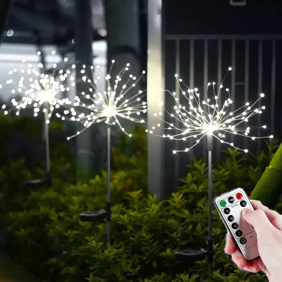 • [Decorazione romantica]: Le luci solari dei fuochi d'artificio non solo possono accendersi. Ha lo stesso effetto romantico nell'illuminazione esterna o interna. Queste luci solari sono adatte per giardini, soggiorni, matrimoni, feste, San Valentino, Halloween, Natale, ecc.
