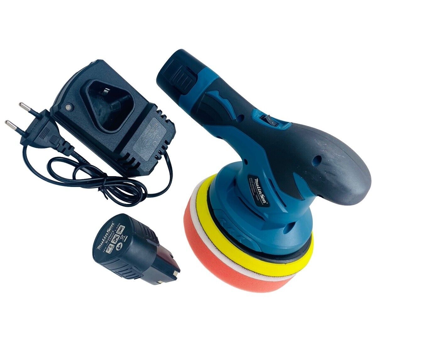 Questa lucidatrice è dotata di doppia batteria da 12v e 1.5A (Nota bene, sulle batterie è riportato 18v nominali, ma i volt reali sono 12).