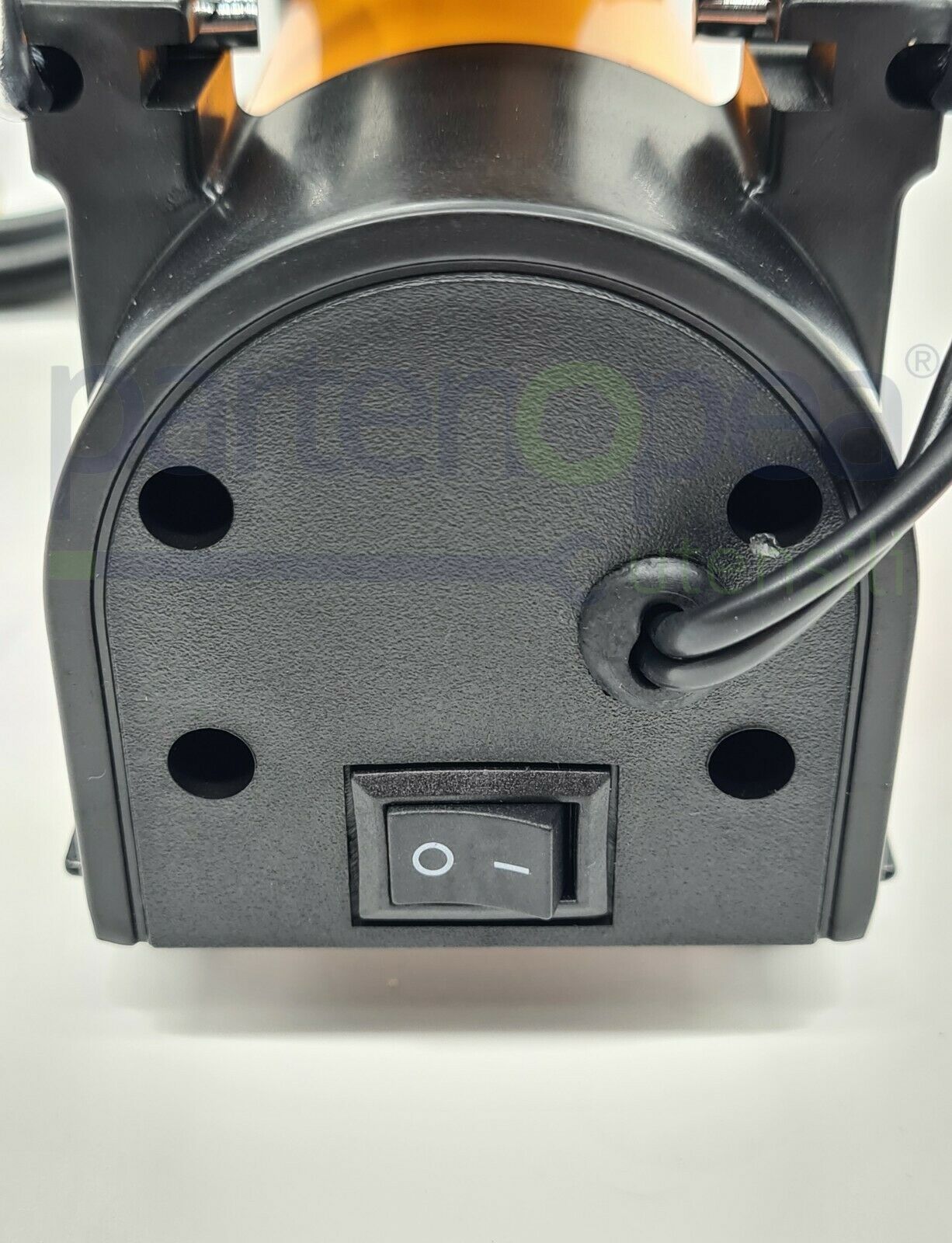 Mini compressore a 12V in grado di emanare 28 litri al minuto.