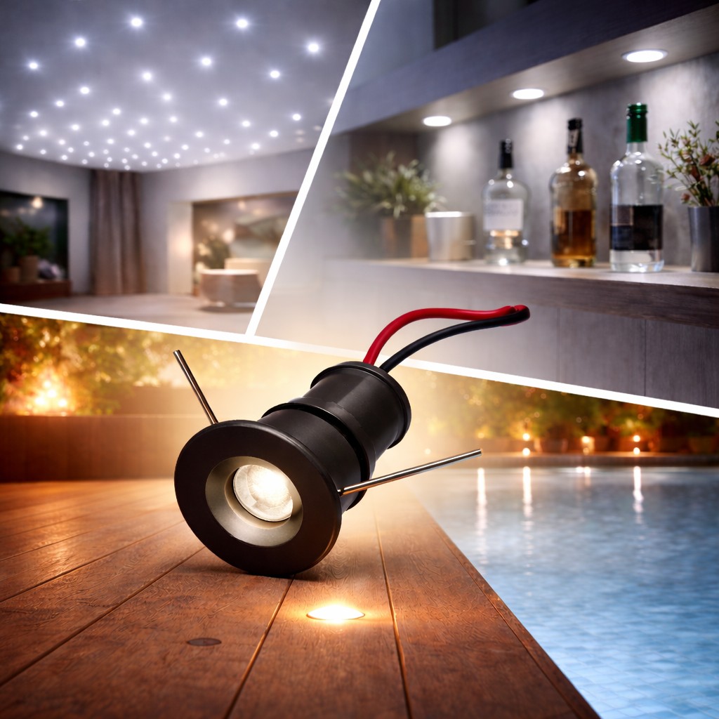 Mini faretto LED da incasso a bassa tensione, ideale per realizzare effetti cielo stellato e punti luce decorativi su soffitti, pareti e superfici. Grazie alle dimensioni compatte e al design discreto, è perfetto anche per vetrine, mensole, mobili, espositori e installazioni d’accento in ambienti domestici e commerciali.