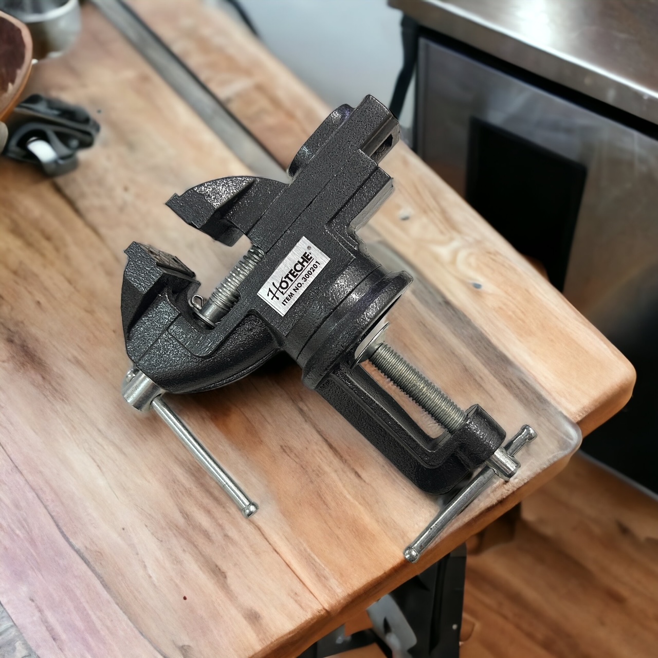 1. Morsa da banco con base girevole per piccoli lavori domestici o anche per officine professionali per bloccare piccoli oggetti durante la loro lavorazione.
