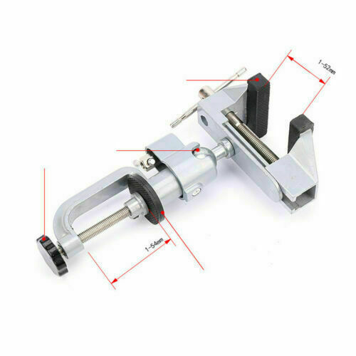 Morsa da banco realizzata in alluminio , dotata di morsetto , con impugnatura ergonomico in plastica , per un perfetto grip al vostro tavolo da lavoro. Ampiezza totale che può essere raggiunta di 50 mm . Rotazione completa di 360° .