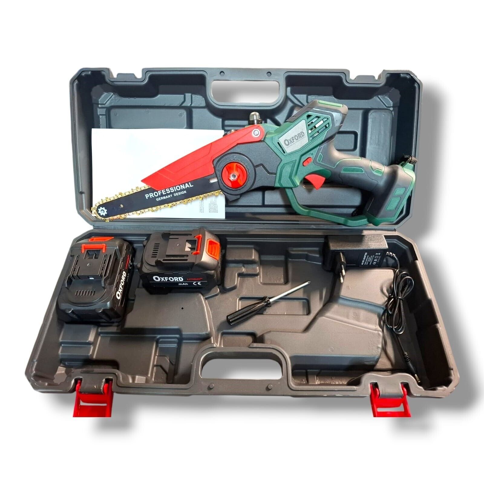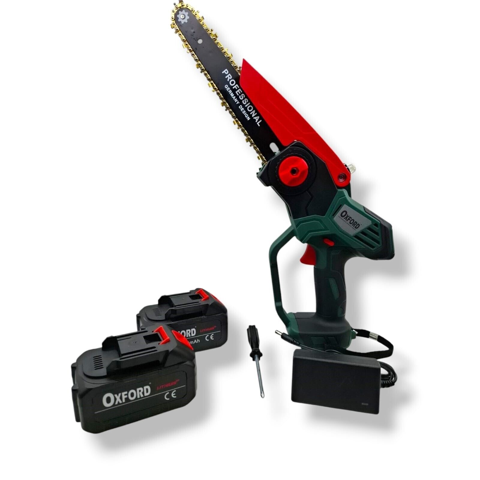 Equipaggiata con una catena personalizzata da 1/4” (47 maglie) e una guida del pignone 7T, la mini motosega OXFORD con batteria raggiunge una velocità di 6.0 m/s. La motosega elettrica taglia senza sforzo un tronco di 6 pollici di spessore in soli 10 secondi, rendendola ideale per un lavoro rapido ed efficiente in giardino o per progetti di bricolage.
