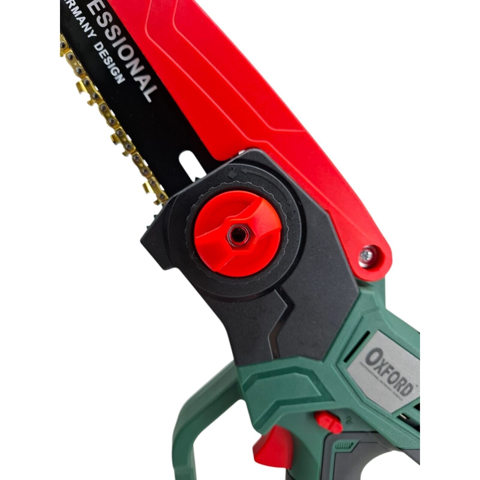 Equipaggiata con una catena personalizzata da 1/4” (47 maglie) e una guida del pignone 7T, la mini motosega OXFORD con batteria raggiunge una velocità di 6.0 m/s. La motosega elettrica taglia senza sforzo un tronco di 6 pollici di spessore in soli 10 secondi, rendendola ideale per un lavoro rapido ed efficiente in giardino o per progetti di bricolage.