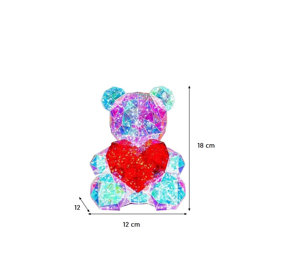 L’Orsetto Luminoso LED Effetto 3D con Cuore Rosso è molto più di una semplice decorazione: è un simbolo di affetto, un oggetto emozionale capace di trasformare ogni ambiente con la sua atmosfera magica e avvolgente. La struttura sfaccettata genera un sorprendente effetto tridimensionale, creando giochi di luce che si riflettono sulle superfici circostanti e regalano un tocco di eleganza moderna. Ogni sfumatura luminosa scorre dolcemente attraverso il materiale trasparente dell’orsetto, producendo un effetto visivo vivace, colorato e affascinante, ideale per rendere speciale ogni momento.