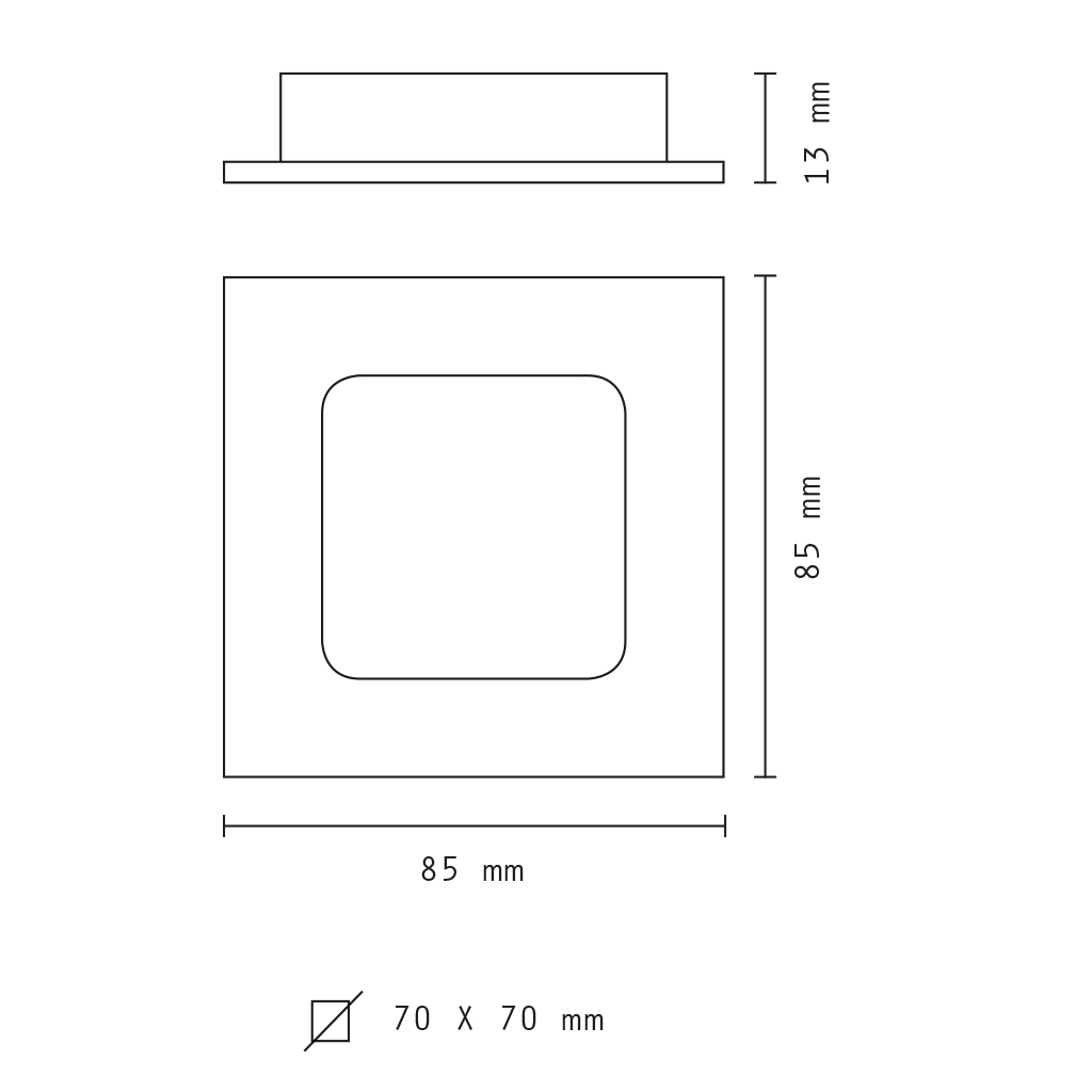Foro di Incasso: 70x70 mm