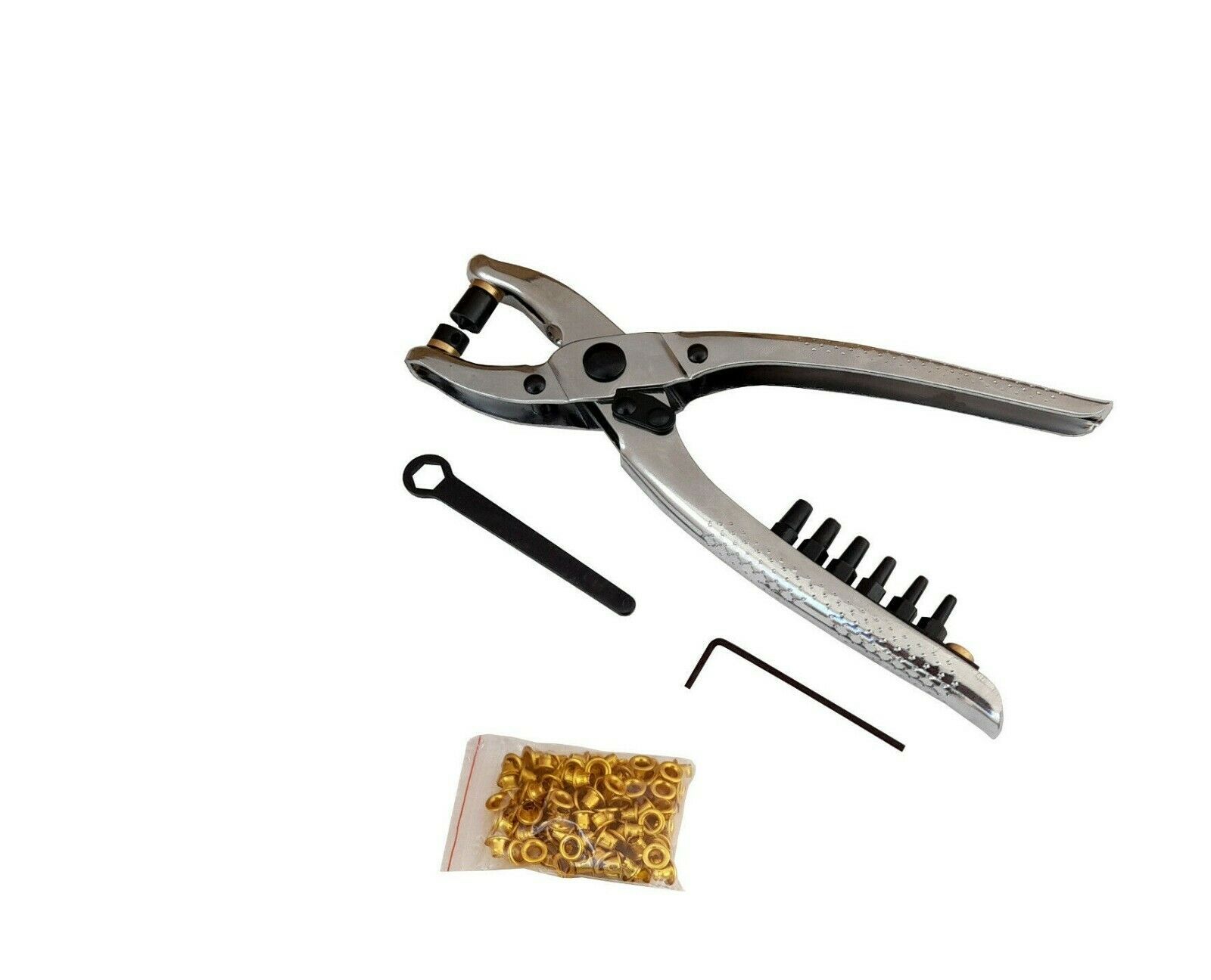 PINZA 2 IN 1 + 100 OCCHIELLI OCCHIELLATRICE FUSTELLATRICE X FORARE CUOIO PELLE