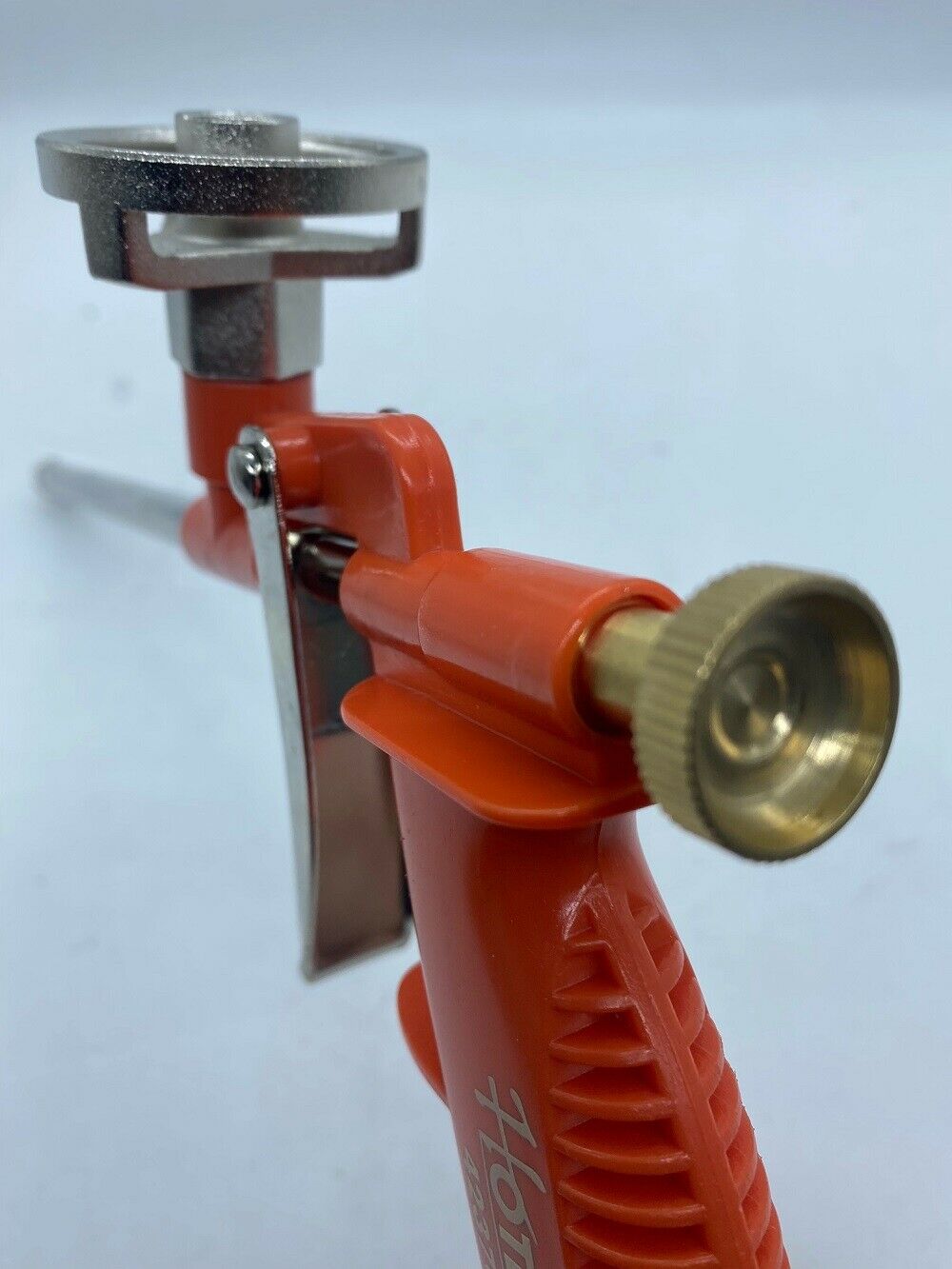 Pistola per schiuma poliuretanica. Corpo e adattatore in lega di zinco, grilletto in metallo.