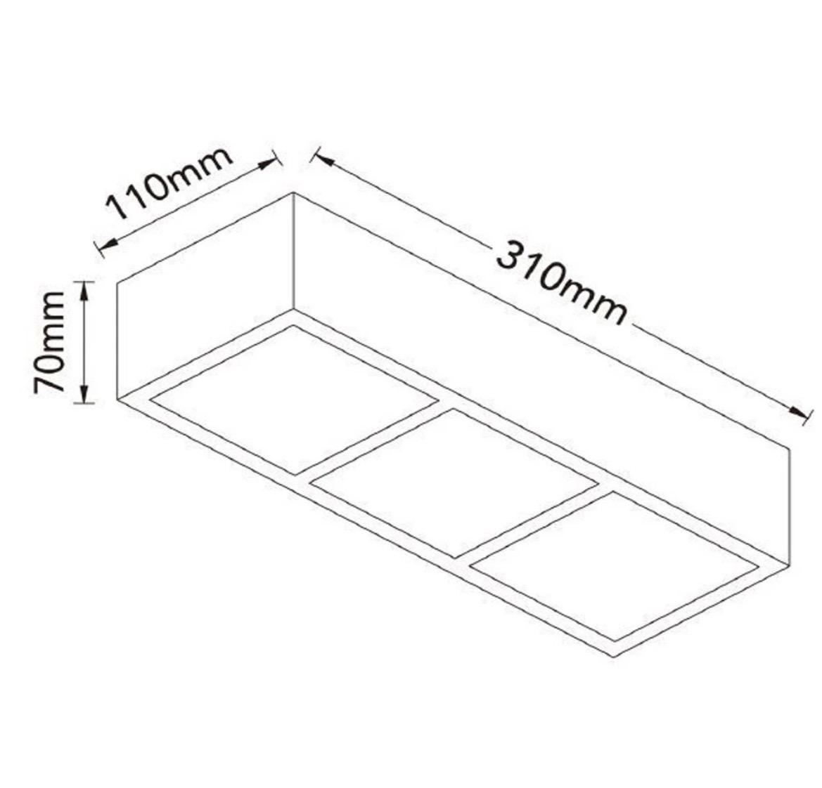 Dotata di triplo attacco GX53, viene fornita con 3 lampadine da 10W con tecnologia CCT switch, che permette di scegliere tra luce calda, naturale o fredda (3000K / 4000K / 6500K).