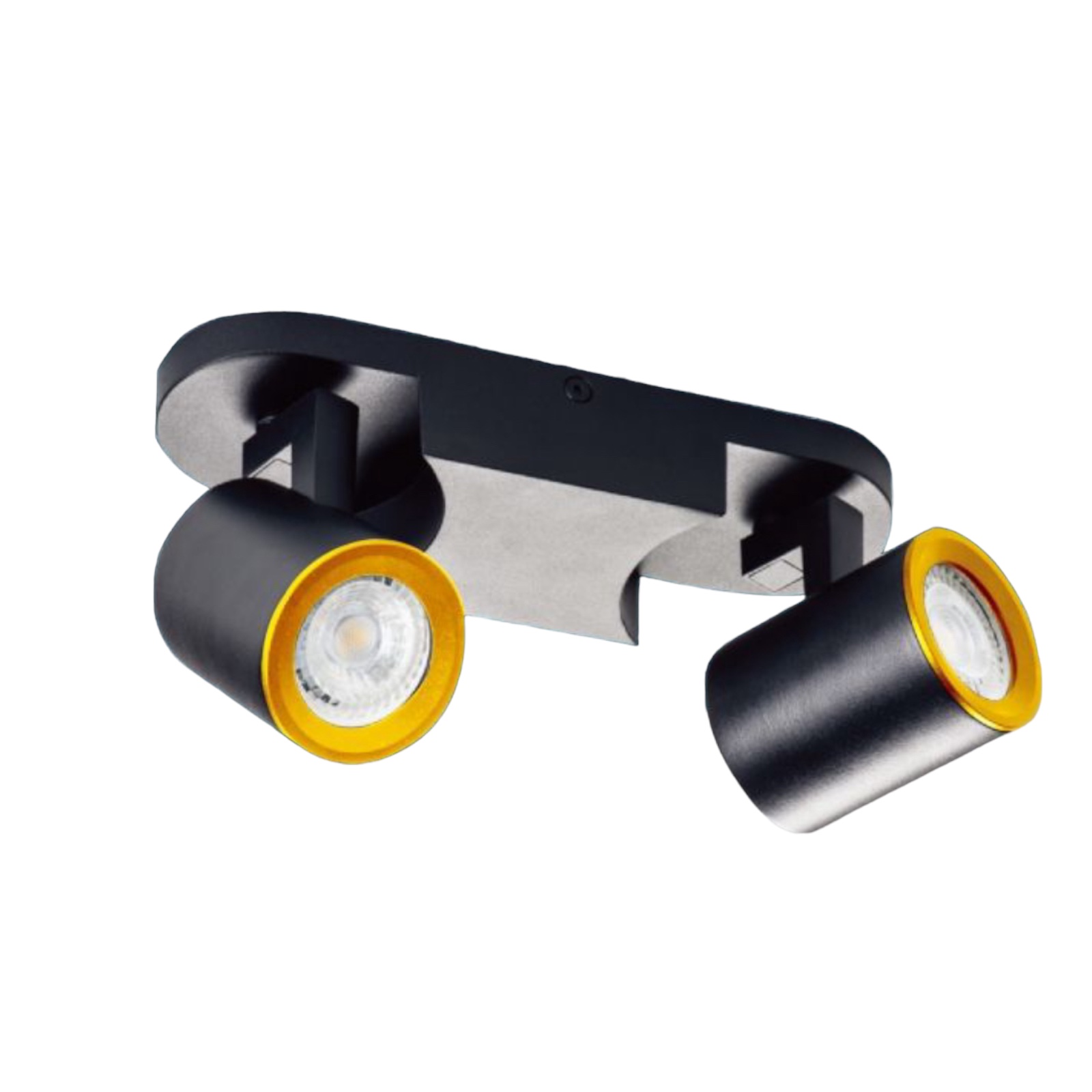 Plafoniera lampada da soffitto Nero e Oro faretto direzionabile e attacco per lampade GU10 ad 2 diffusori