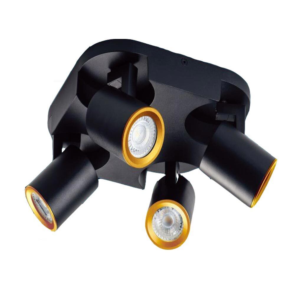 Plafoniera lampada da soffitto Quadrata Nero e Oro faretto direzionabile e attacco per lampade GU10 ad 4 diffusorI