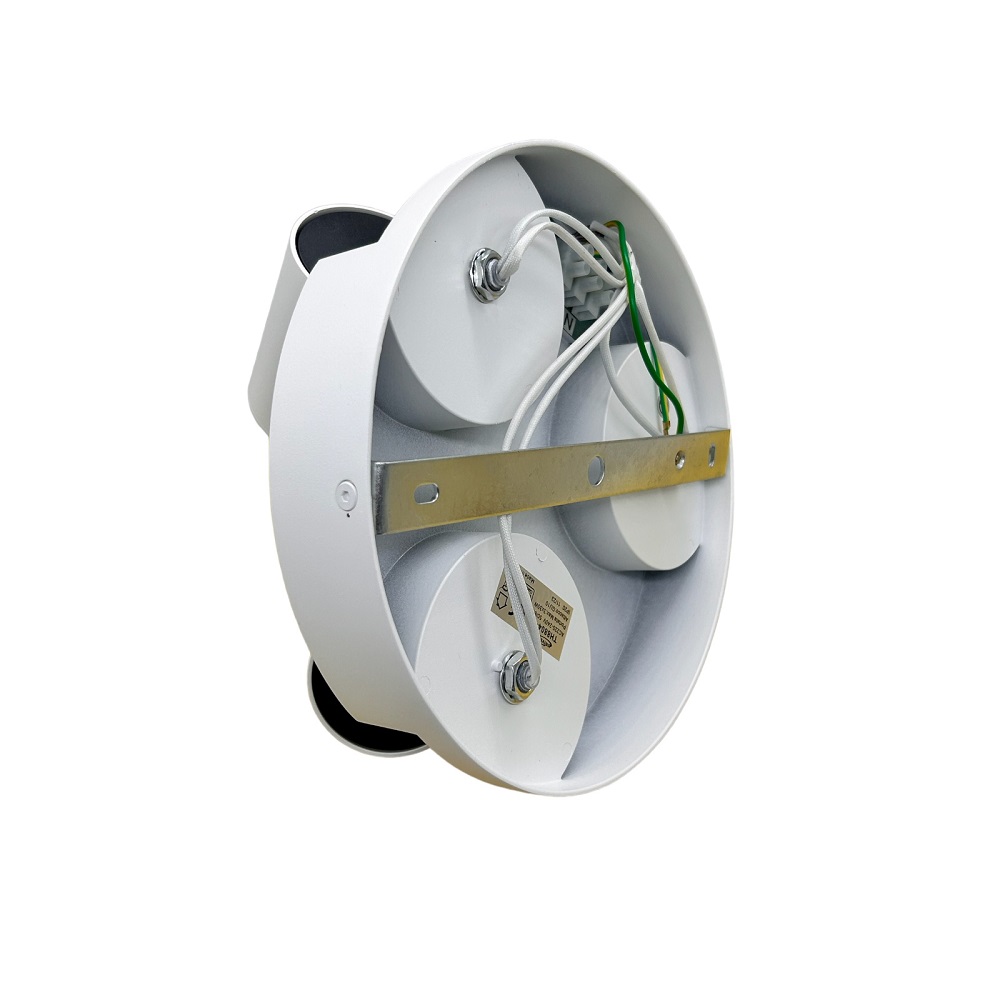 • Caratteristiche: Colore bianco, rotonda,  3 diffusori e doppio Attacco GU10 con massima potenza supportata di 35W cada attacco, misure: 22x10.8x5.8 cm (vedi foto)